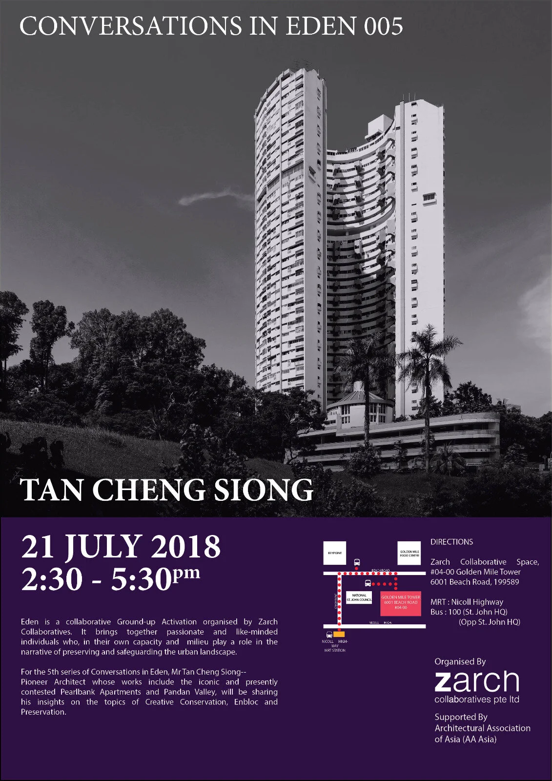 For the 5th series of Conversations in Eden, Mr Tan Cheng Siong -- Pioneer Architect who works include the iconic and presently contested Pearl Bank Apartments and Pandan Valley, shared his insights on the topics of Creative Conservation, Enbloc and Preservation.